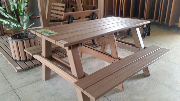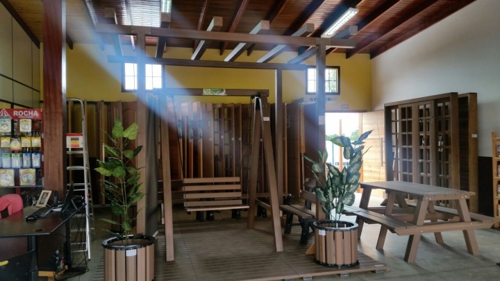 A Madeira Plástica é produzida com Rejeitos industriais. São aqueles plásticos que ninguém quer, ou que ninguém pode reciclar. A tecnologia foi desenvolvida aqui mesmo, em nossa empresa, por nossa gente. Nosso produto não é WPC ? ele não utiliza materiais nobres nem contem madeira natural. Nosso produto é revestido por uma fina camada de material (também reciclado), que pode ser aditivado com corantes, agentes anti UV e agentes anti chama. Toda a agua utilizada no processo é coletada da chuva e o circuito é fechado, sem haver qualquer tipo de contaminação ao meio ambiente.