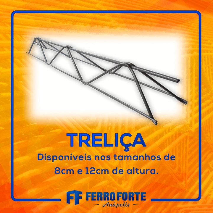 A Treliça é fabricada em aço CA-60 nervurado, que permite melhor aderência ao concreto. Possui uma enorme capacidade de vencer grandes vãos e suportar altas cargas com toda a segurança. O fornecimento é feito em barras de 6 metros, com 8 ou 12cm de altura.